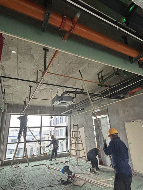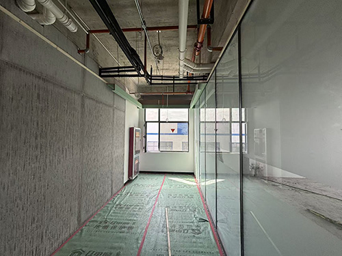 目前,办公楼墙面基层处理已有序推进,两个展厅的展架搭建与初步布线同步开展。全体施工人员紧盯节点、默契配合,以专业与专注攻克施工难点,全力保障项目按计划推进,为客户打造高品质的办公与展示空间。