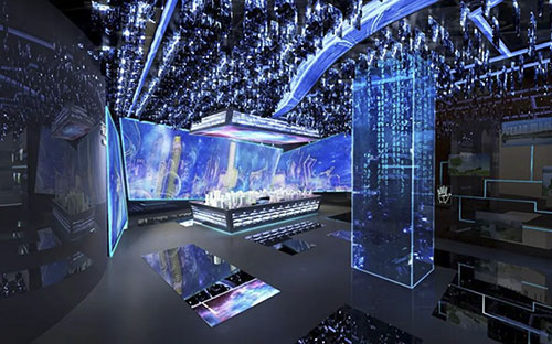 在数字交互领域,我们走出差异化道路:相比美国Meow Wolf的纯虚拟体验,我们强调“实体交互”的价值。为航天基地展厅设计的“寰宇之眼”穹顶装置,集成5G模块实时映射卫星数据,观众旋转实体星盘即可在直径9米的穹幕上重构宇宙图景,这种“虚实共生”设计语言已获得12项技术专利。