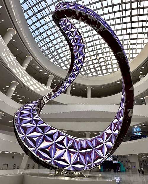 在当代展馆设计中,装置艺术正经历着从“空间装饰”到“叙事主体”的质变。作为深耕展陈行业十余年的创新者,西安威宇铭展览公司始终以开放视角审视全球行业动向,从上海技能博物馆的“世界引擎”对工业美学的解构,到西安科技馆莫比乌斯环装置对拓扑学的诗意转译,这些标杆案例不仅成为我们研究行业趋势的样本,更启发我们构建起“技术为骨、人文为魂”的设计哲学。
